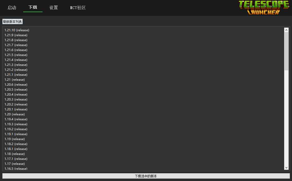 可以简单启动Minecraft,默认通过官方源下载版本,UI可能有点简陋ovo